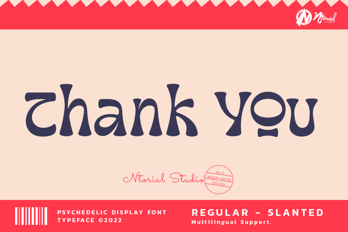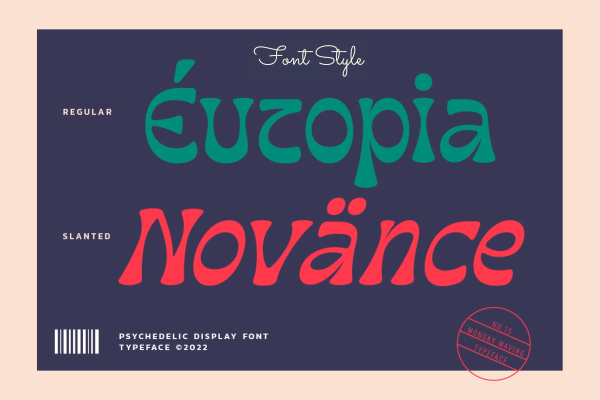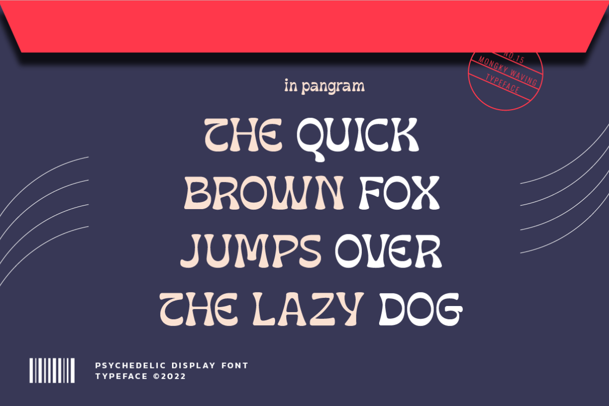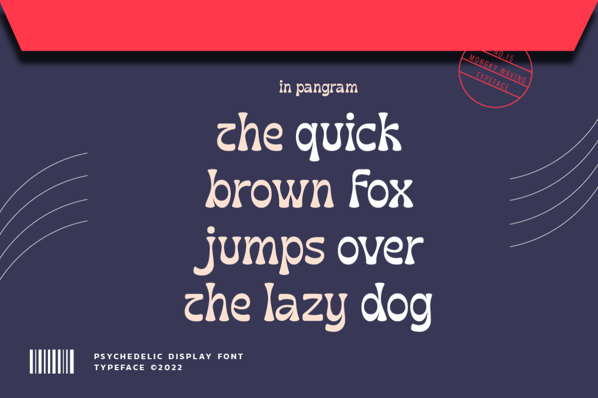 Introducing Mongky Waving: A Mesmerizing Psychedelic Display Font Transport your designs into a realm of captivating psychedelia with Mongky Waving, an enchanting display font designed to infuse your projects with an electrifying vibe. Its hypnotic swirls and dynamic strokes command attention, lending an otherworldly charm to your visual compositions. Mongky Waving stands out for its dual versions - the regular and slant - offering you the freedom to experiment and create designs that oscillate between structured sophistication and whimsical flair. This font is a celebration of creativity, enabling you to craft designs that transcend boundaries and ignite the imagination. Discover the key features of Mongky Waving: